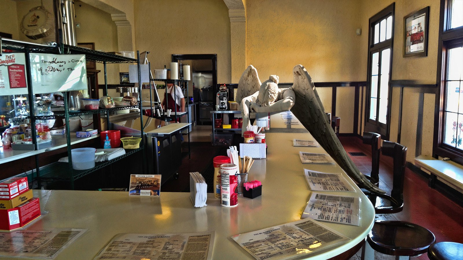 She let go of his hand. She looked around at the stale incarnation of the once charming cafe.